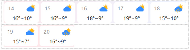 1、天氣顧問(信息來源網(wǎng)絡(luò),僅供參考,臨近出發(fā)可再查詢最新天氣)
